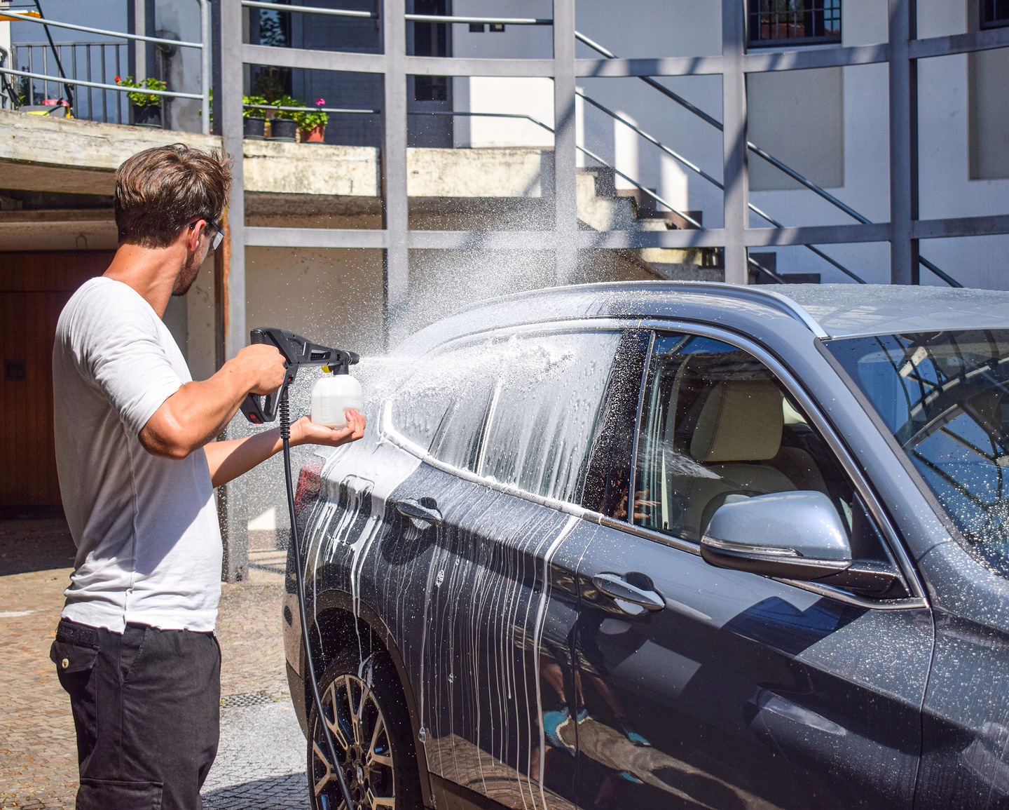 Urządzenia dozujące (pianownice, myjki ciśnieniowe wyposażone w system dozowania) – wlać koncentrat do zbiornika na chemie i ustawić dozowanie 10 – 15 %