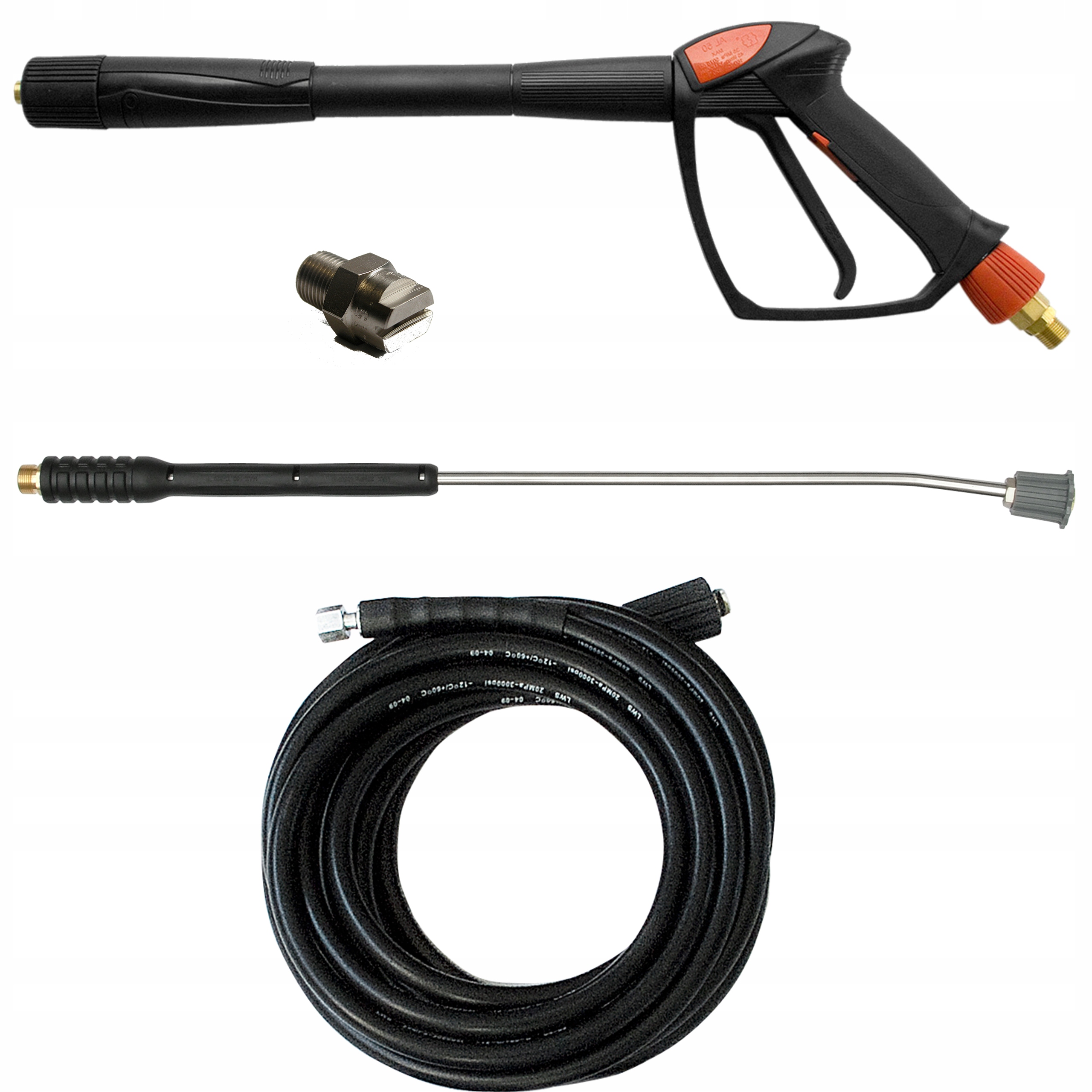 Myjka została wyposażona w profesjonalne akcesoria. Pistolet mosiężny – dla większego bezpieczeństwa pracy wszystkie połączenia są na mosiężne gwinty. Lanca z DYSZĄ o stałym kącie mycia. Wąż wysoko ciśnieniowy w PODWÓJNYM OPLOCIE – dzięki temu rozwiązaniu jest bezpieczny przy wysokich ciśnieniach oraz nie ulega uszkodzeniom mechanicznym.