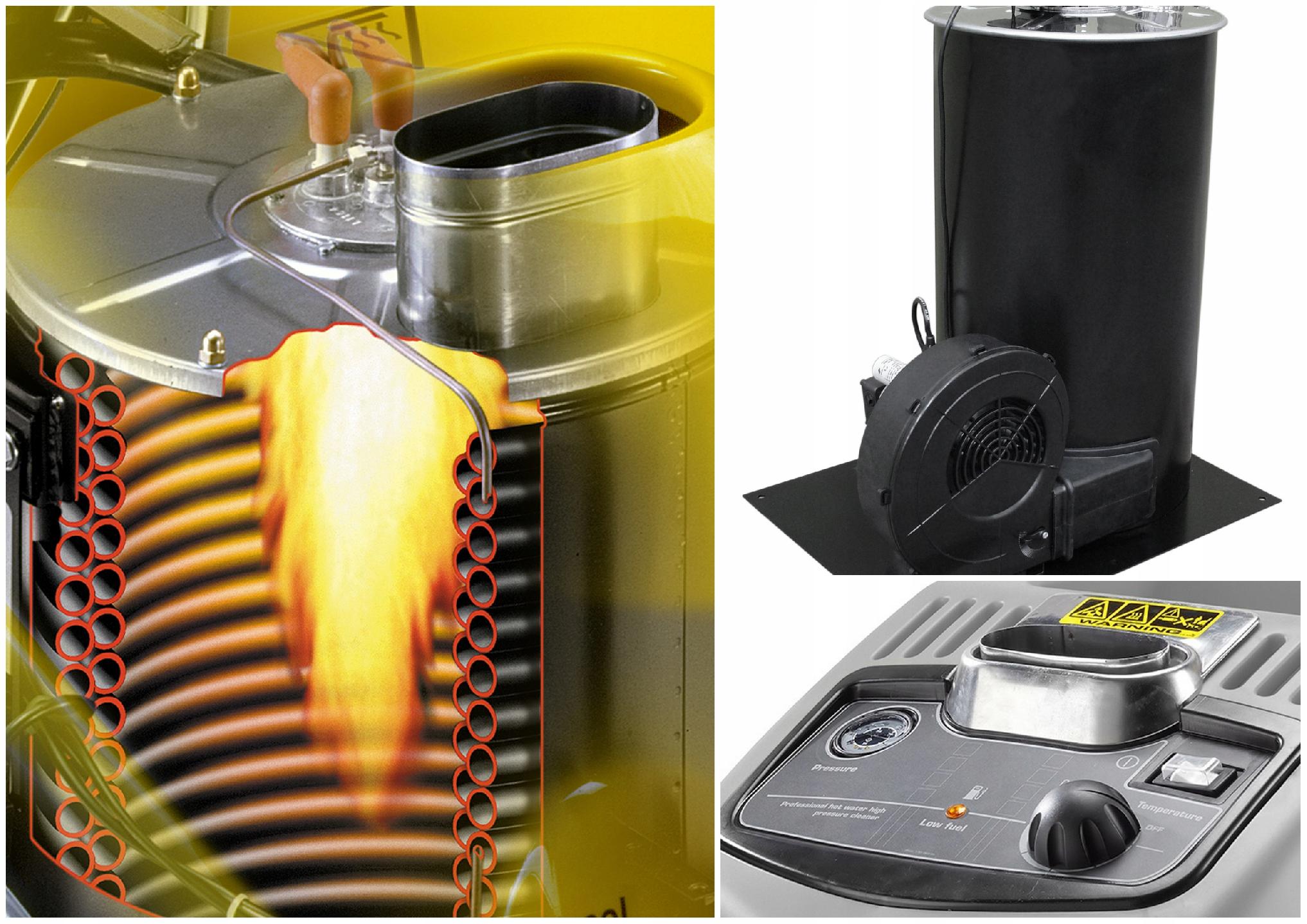 Wężownica wykonana jest ze stali w podwójnym oplocie. Wylot spalin dla lepszego zabezpieczenia obudowy został wykonany pokryty nierdzewna stalą. Istniej możliwość płynnej regulacji temperatury dzięki zastosowaniu termostatu. Maszyn wyposażona jest w wysokiej klasy pompę paliwa oraz transformator. Na pulpicie sterującym umieszczona została dioda sygnalizująca brak paliwa.