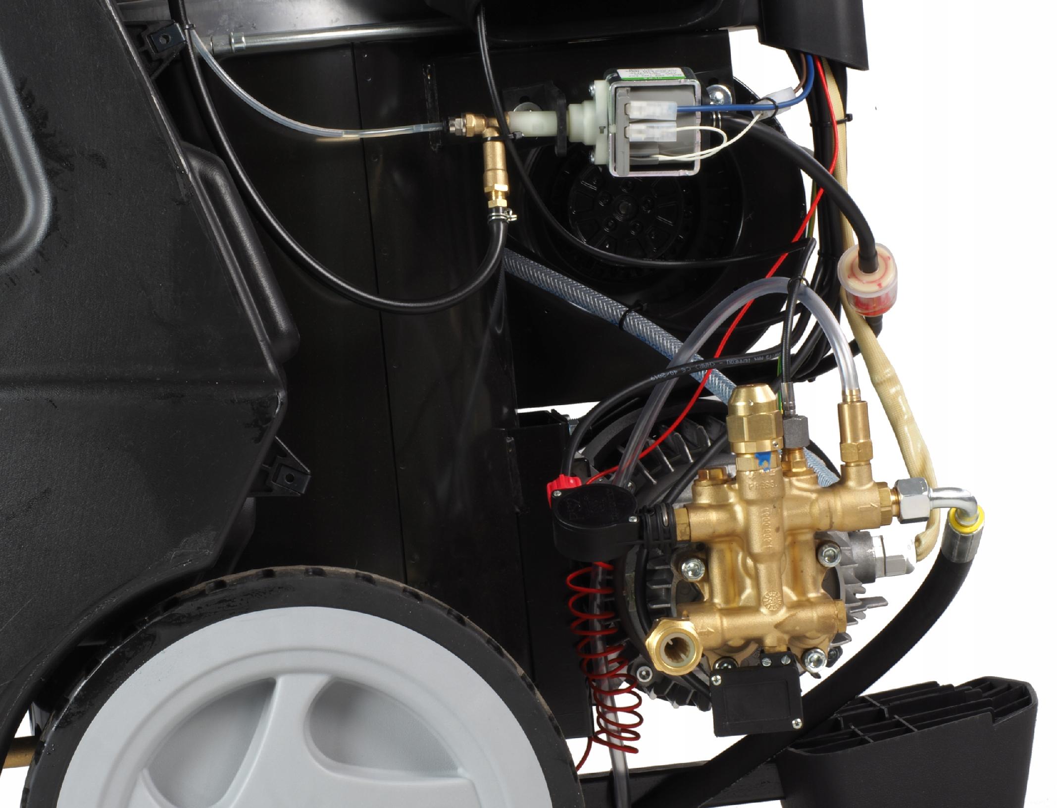 Głowica myjki wykonana z MOSIĄDZU, materiał trwały, odporny na temperatury oraz bardzo wytrzymały na przeciążenia i długotrwałe prace. Silnik INDUKCYJNY przeznaczony do długotrwałych prac. Tłoki stalowe pokryte CERAMIKĄ. Dzięki tym właściwością maszyna może pracować dłużej niż maszyny z pompami wykonanymi z innych komponentów. Nowa technologia pomp Lavor Hight Power.