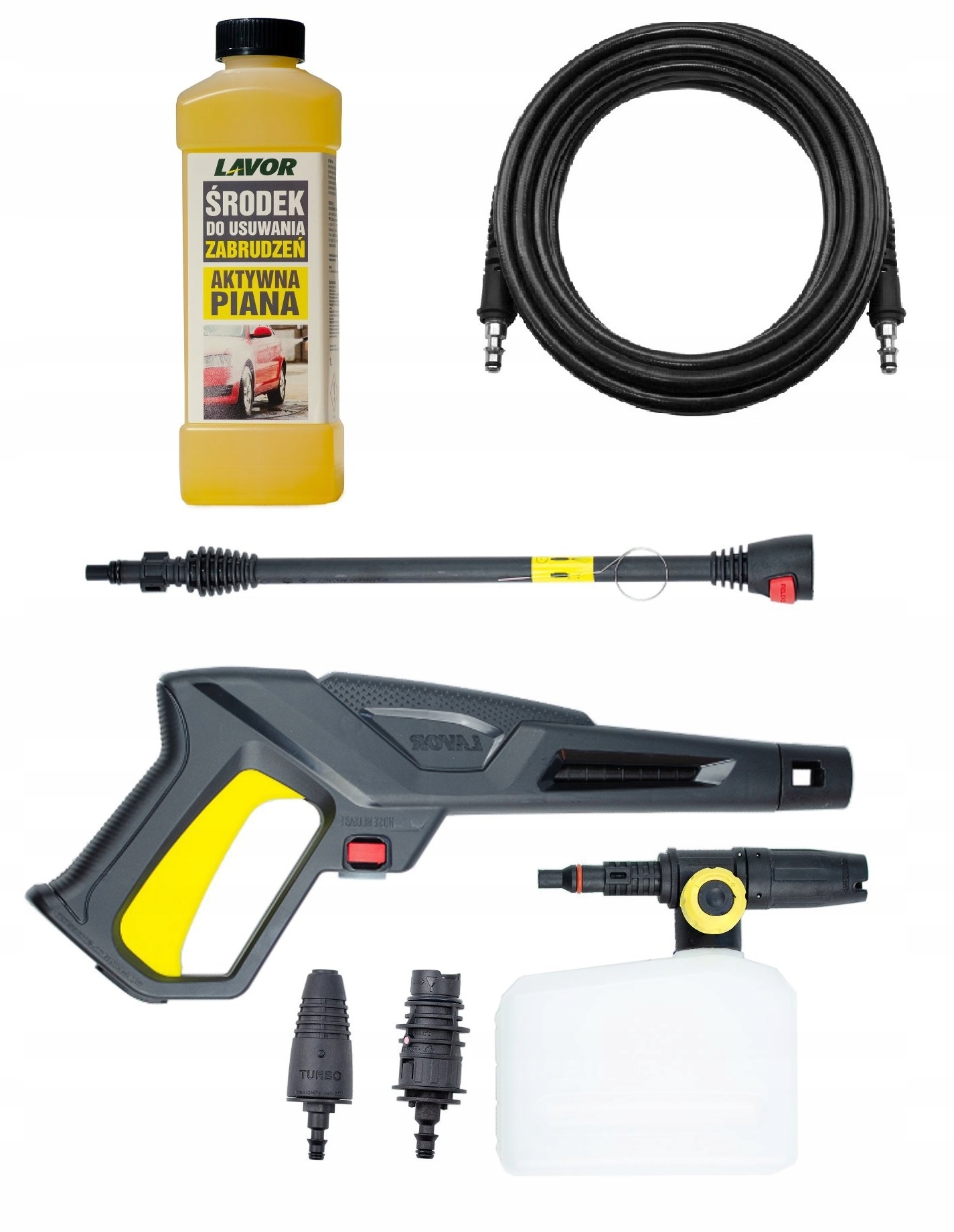 Lanca pianowa ze zbiornikiem po podłączeniu do pistoletu ze zbiorniczka następuje pobieranie środka chemicznego o zadanym stężeniu. Stężenie ustawiamy na lancy pokrętłem lub przygotowujemy zgodnie z kartą produktu chemicznego Lavor. Dzięki swojej wszechstronności doskonale nadaje się do czyszczenia samochodu, mebli ogrodowych, fasad, schodów, przyczep kempingowych, ścieżek, murów, żaluzji, tarasów, podjazdów itp.