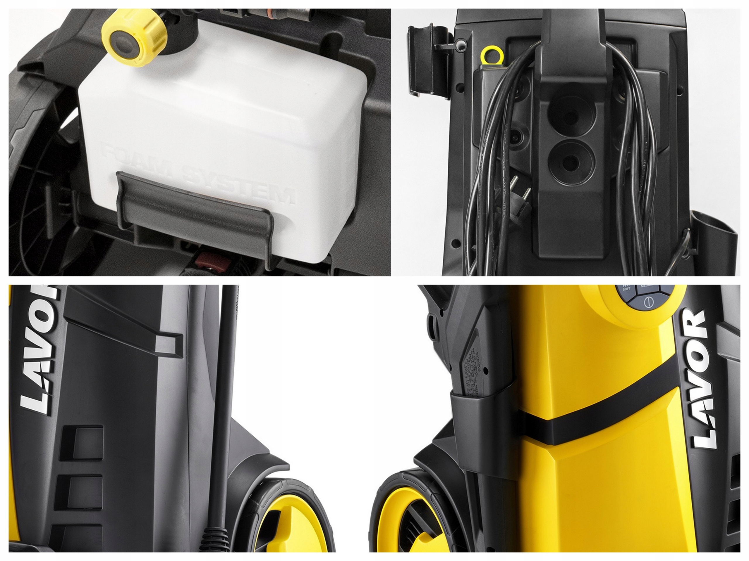 Głowica myjki wykonana z aluminium, materiał trwały i odporny na temperatury. Dzięki tym właściwością maszyna może pracować dłużej niż maszyny z pompami wykonanymi z innych komponentów. Od 2020 r. nowa technologia pomp Lavor Hight Power.