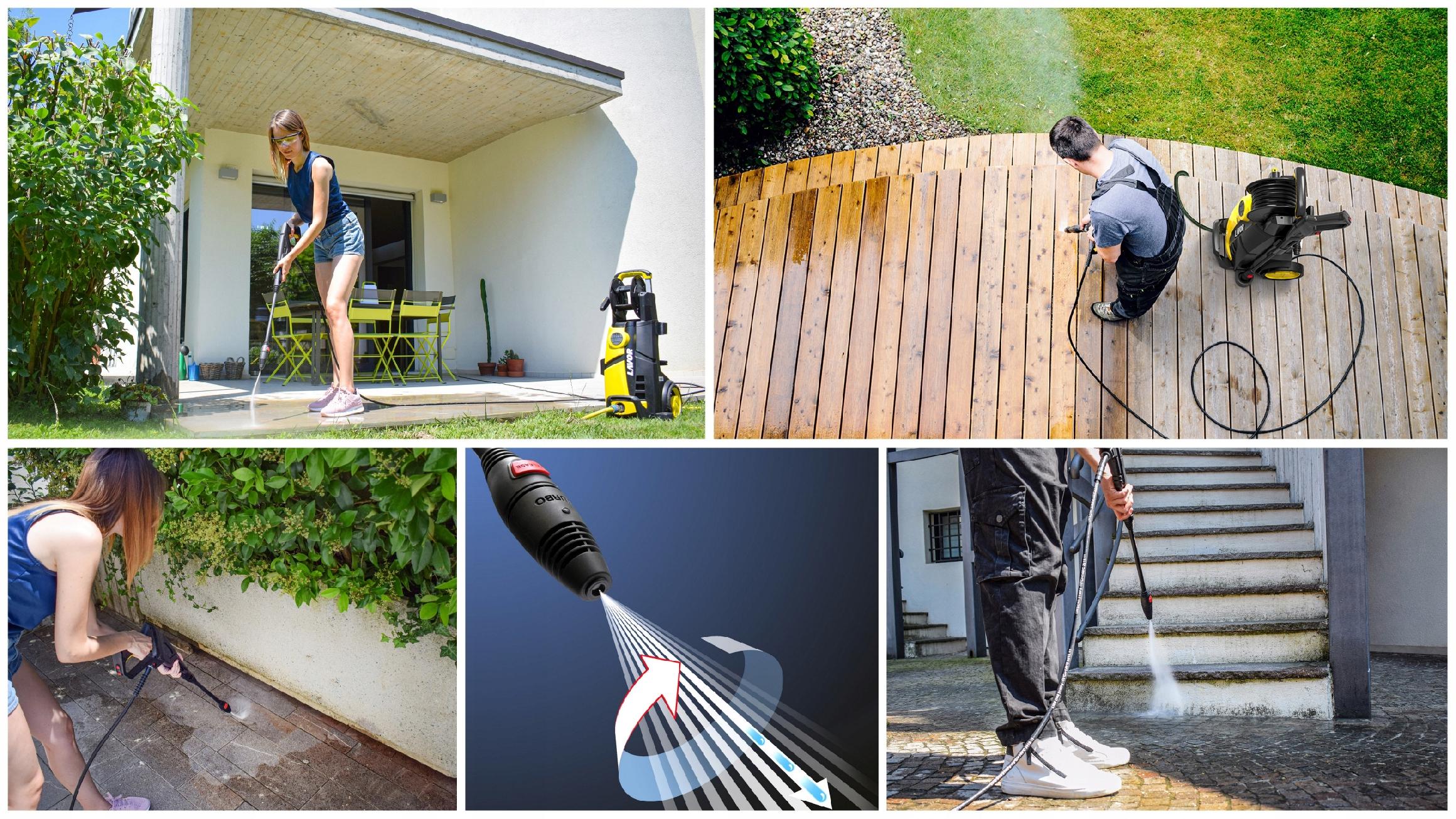 Patio cleaner L 25 idealnie nadaje się do czyszczenia posadzki, kostki, tarasu po zimie. Istniej możliwość czyszczenia ścian domu od wykwitów.