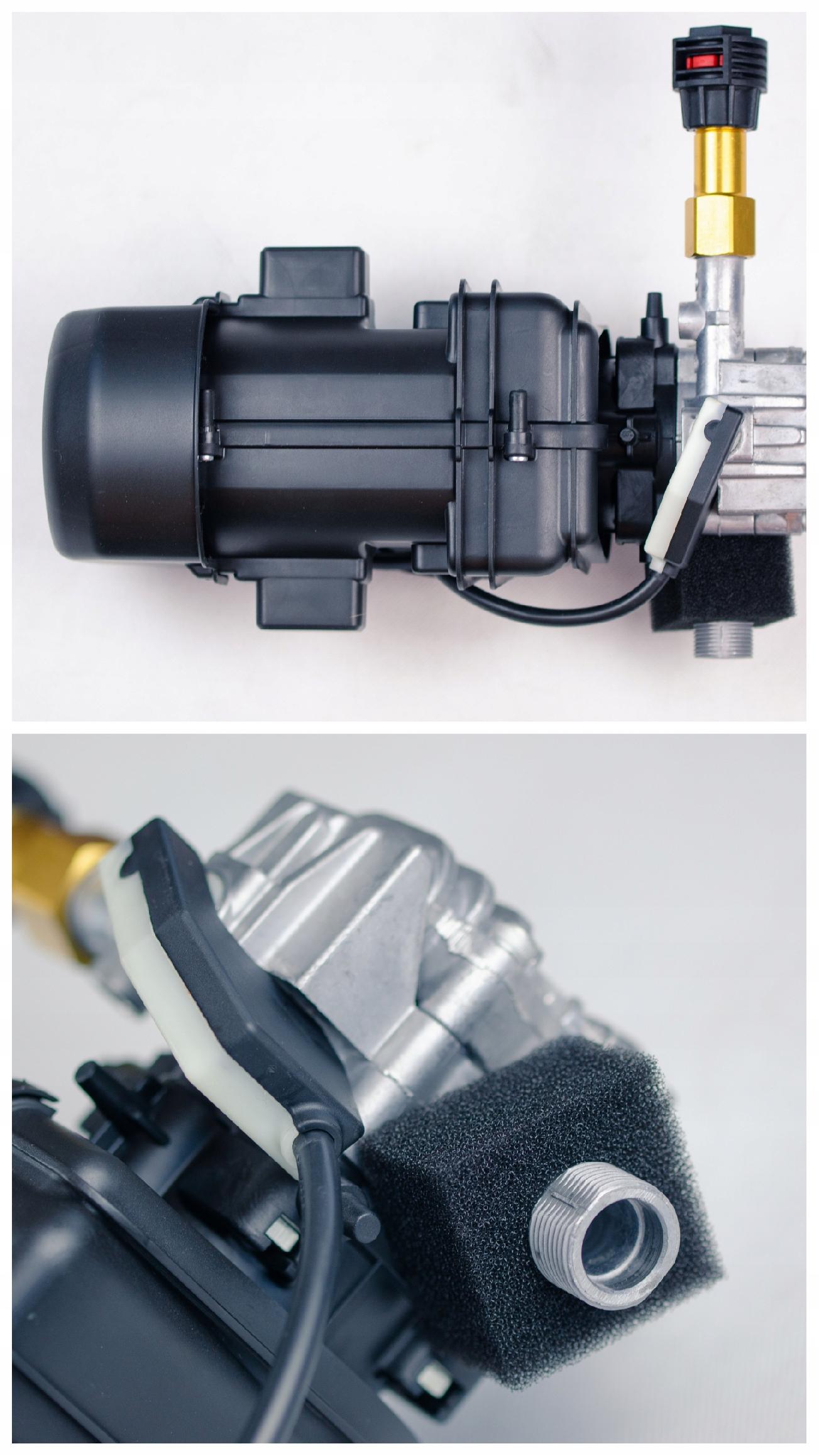 Nowoczesna technologia silników szczotkowych w specjalnej osłonie dla jeszcze lepszego zabezpieczenia przed zewnętrznym zalaniem komutatora i szczotek. Uzwojenie wykonane z miedzi. Złącze dla lepszego zabezpieczenia mosiężne na szybko-złacze.