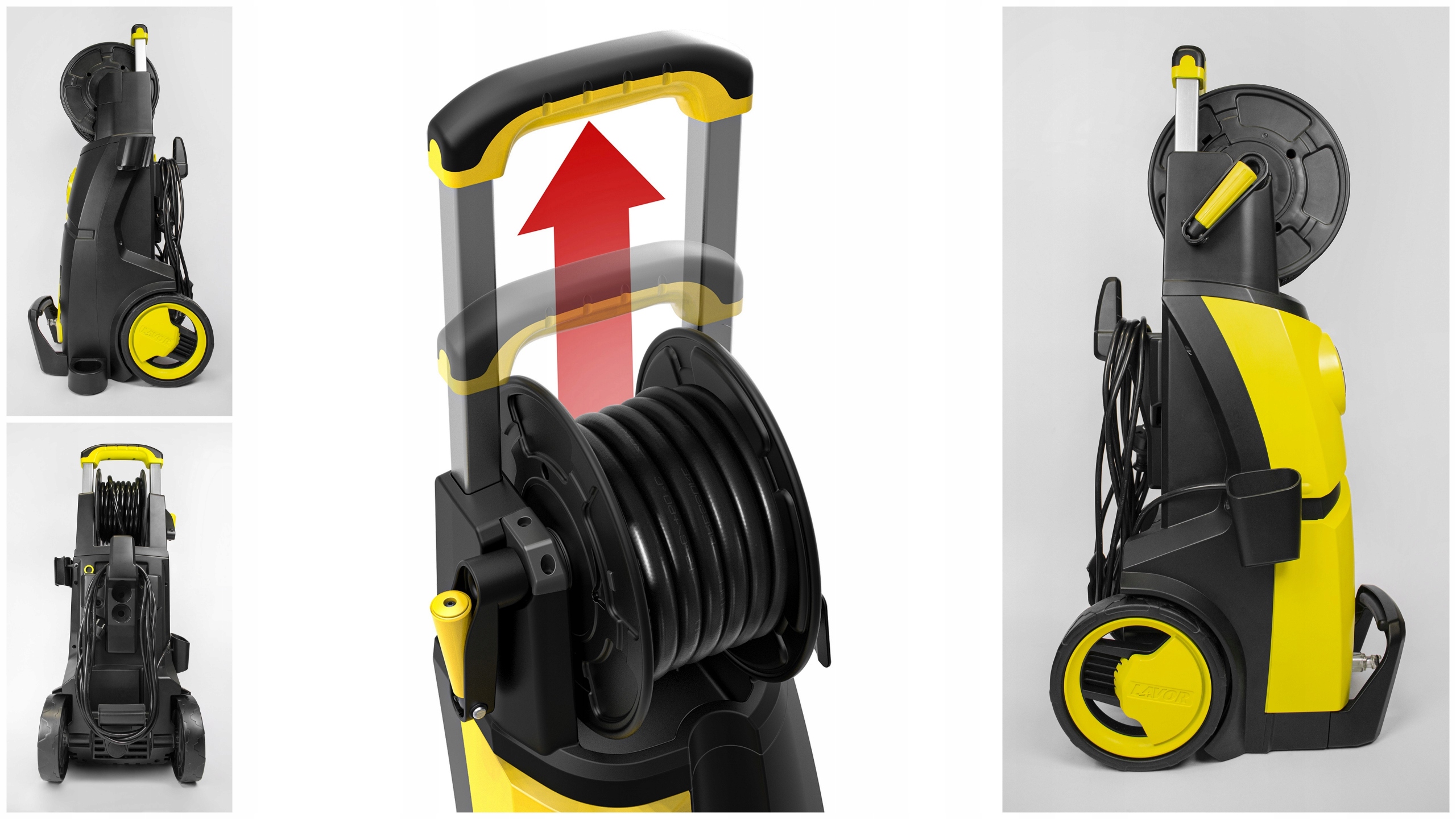 Głowica myjki wykonana z aluminium, materiał trwały i odporny na temperatury. Dzięki tym właściwością maszyna może pracować dłużej niż maszyny z pompami wykonanymi z innych komponentów. Od 2022 r. nowa technologia pomp Lavor Hight Power.