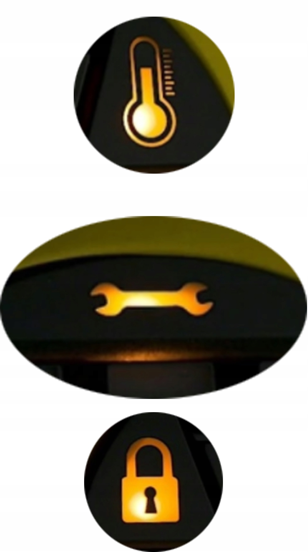 ZABEZPIECZENIE PRZED DZIEĆMI – jeśli zablokujemy maszynę (kombinacja przycisków) pojawi się na wyświetlaczu kłódka, maszyna ma wyłączone wszystkie funkcje. JEDYNY TAKI SYSTEM NA RYNKU!!!