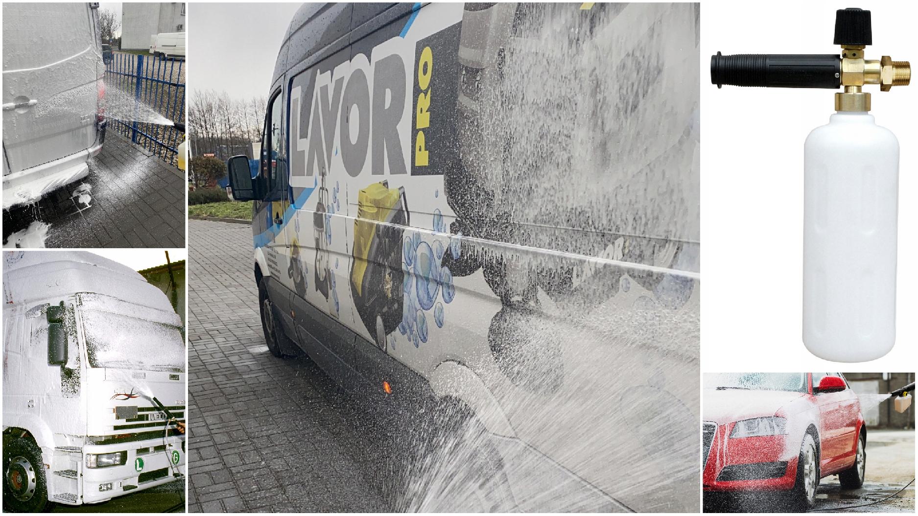 Lanca pianowa (pianownica) – idealnie nadaje się do panowania powierzchni płaskich i ścian.Nakładając środek chemiczny AKTYWNA PIANA LAVOR dzięki lancy pianowej środek chemiczny dłużej pozostaje na mytej powierzchni. Zbiornik pozwala na bardzo precyzyjne dozowanie środka chemicznego. Możemy używać wszystkich rodzajów chemii. W budynkach inwentarskich można dzięki tej lancy przeprowadzić dezynfekcję.