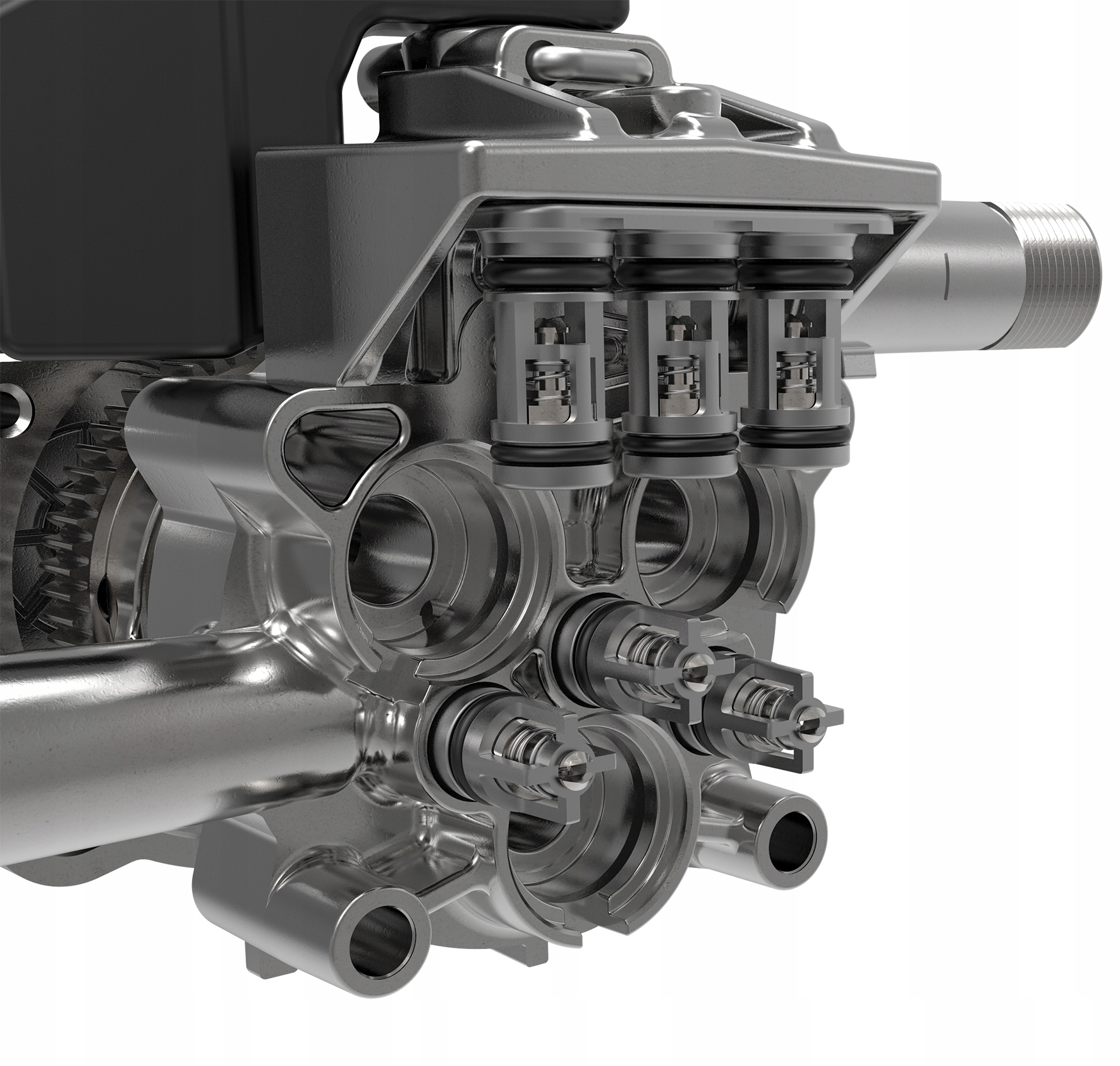 - Trzy tłoki ze stali o wysokiej wytrzymałości, mosiężna głowica pompy z wbudowanym zaworem BYPASS