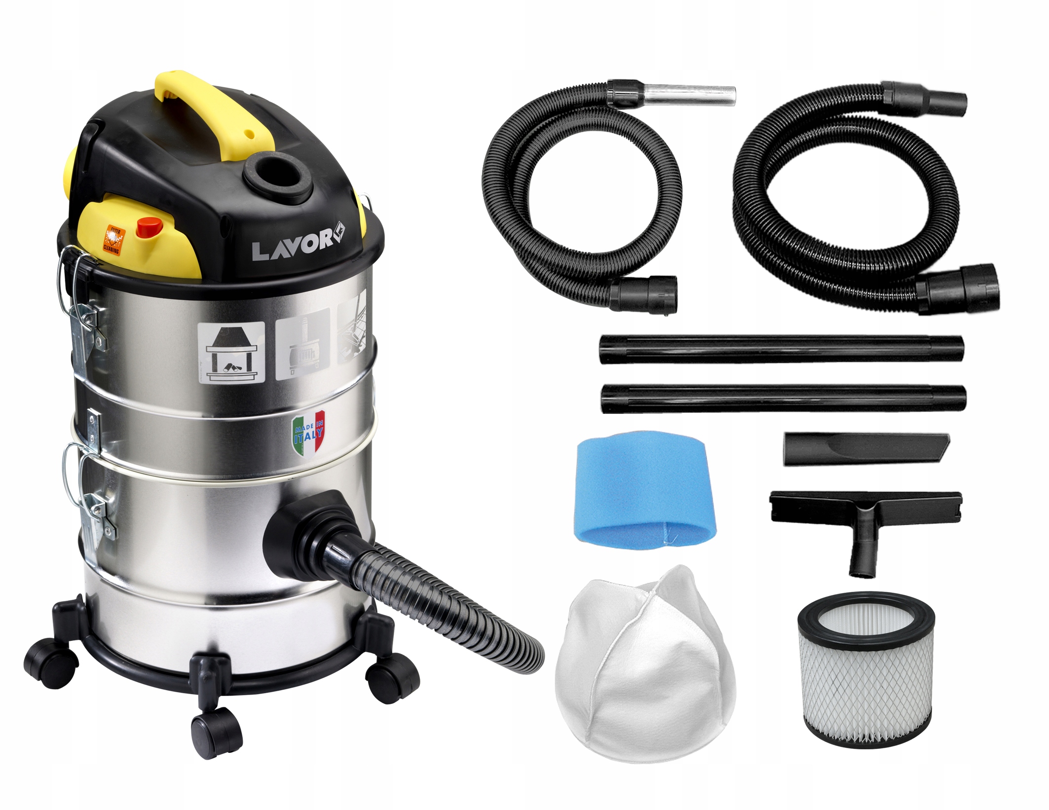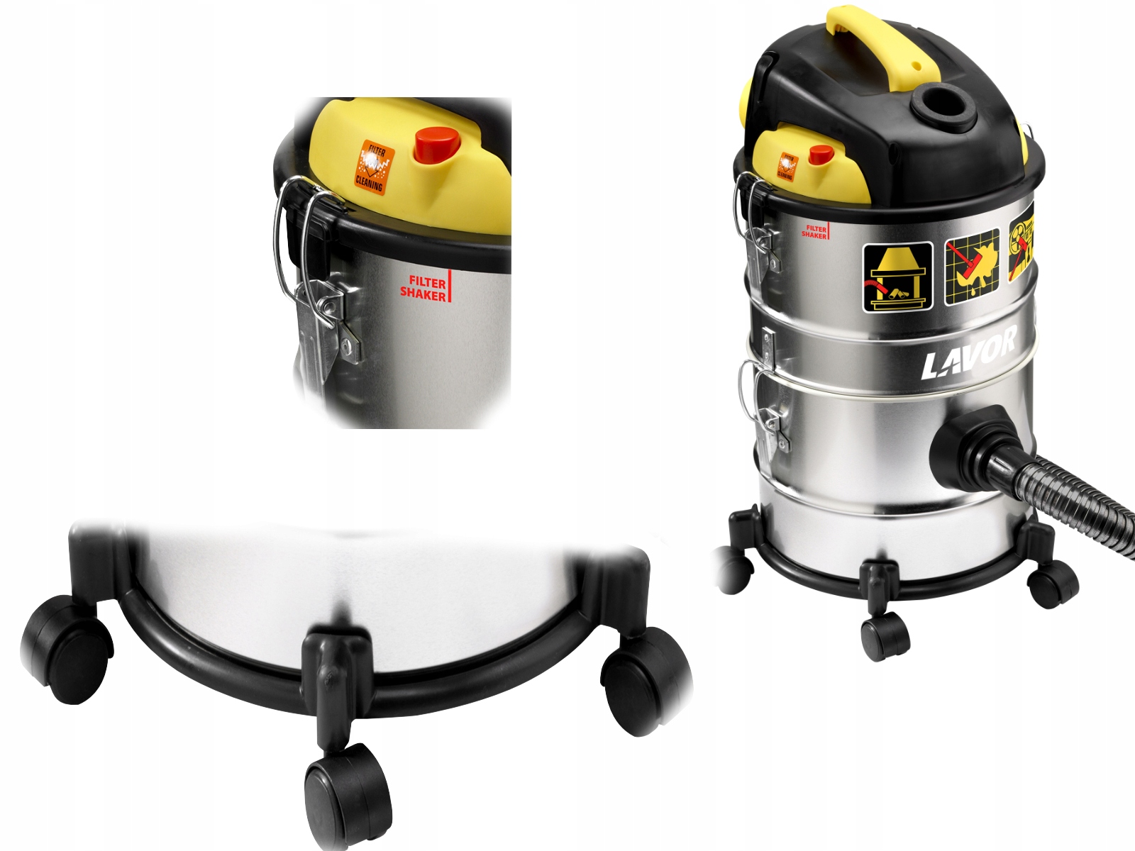 Pojemność zbiornika pozwala na bardzo dobrą filtrację i dużo miejsca na pył. Zbiornik wykonany z METALU odpornego na uszkodzenia mechaniczne i chemiczne. Obrotowe kółka idealnie przemieszczają odkurzacz po warsztacie. Solidne klamry mocujące głowicę. Bardzo wytrzymałe.