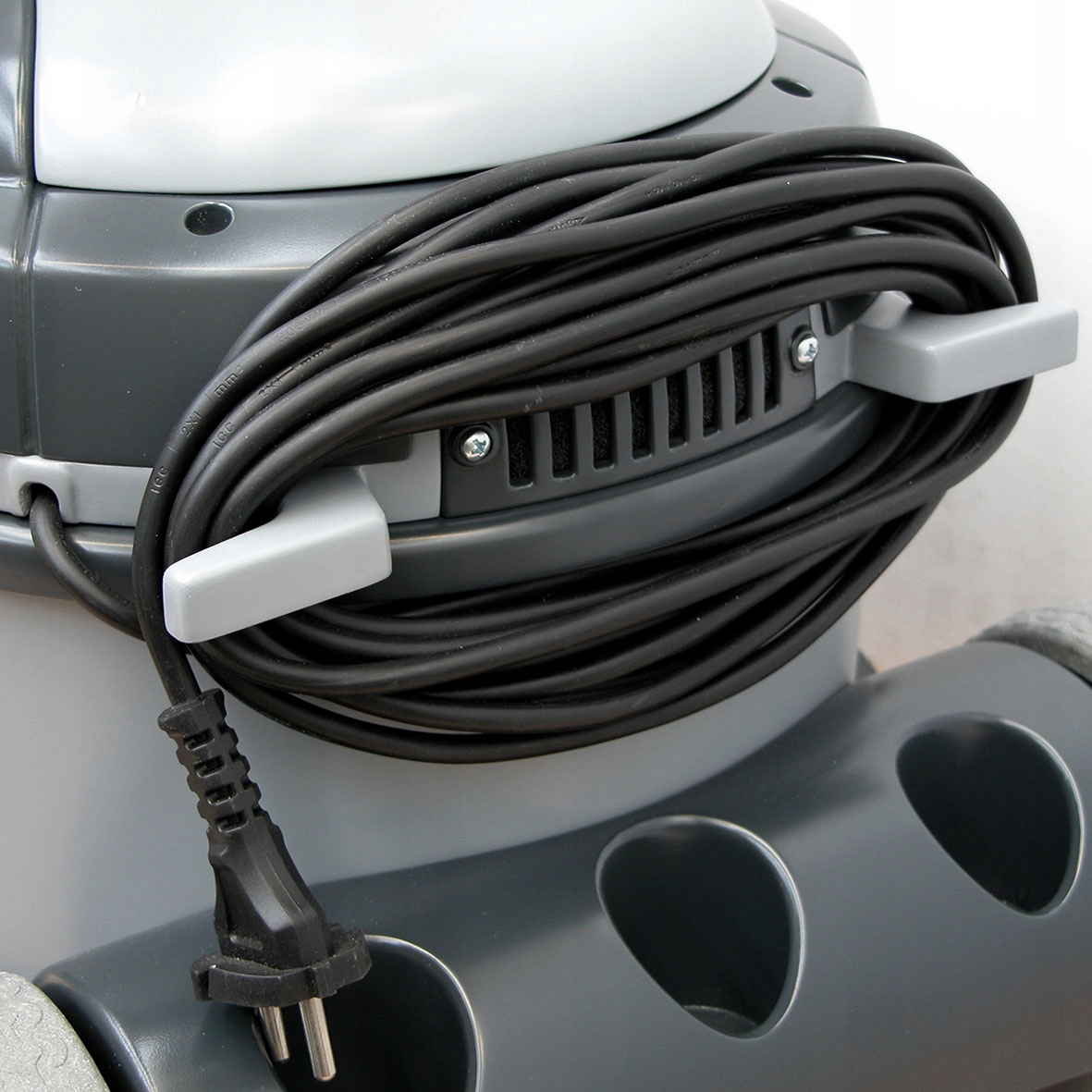 Dodatkowy uchwyt na przewód 230v. Możemy przechowywać urządzenie wraz z akcesoriami w jednym miejscu.