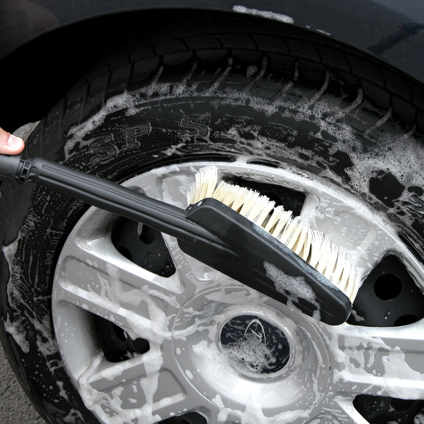Szczotka posiada na końcu każdego włosia mały pędzelek z naturalnego włosia. To rozwiązanie powoduje, że jest ona bardzo delikatna i nie powoduje rysowania lakieru. IDEALNE ROZWIĄZANIE DO MYCIA FELG ALUMINIOWYCH KOLOROWYCH.