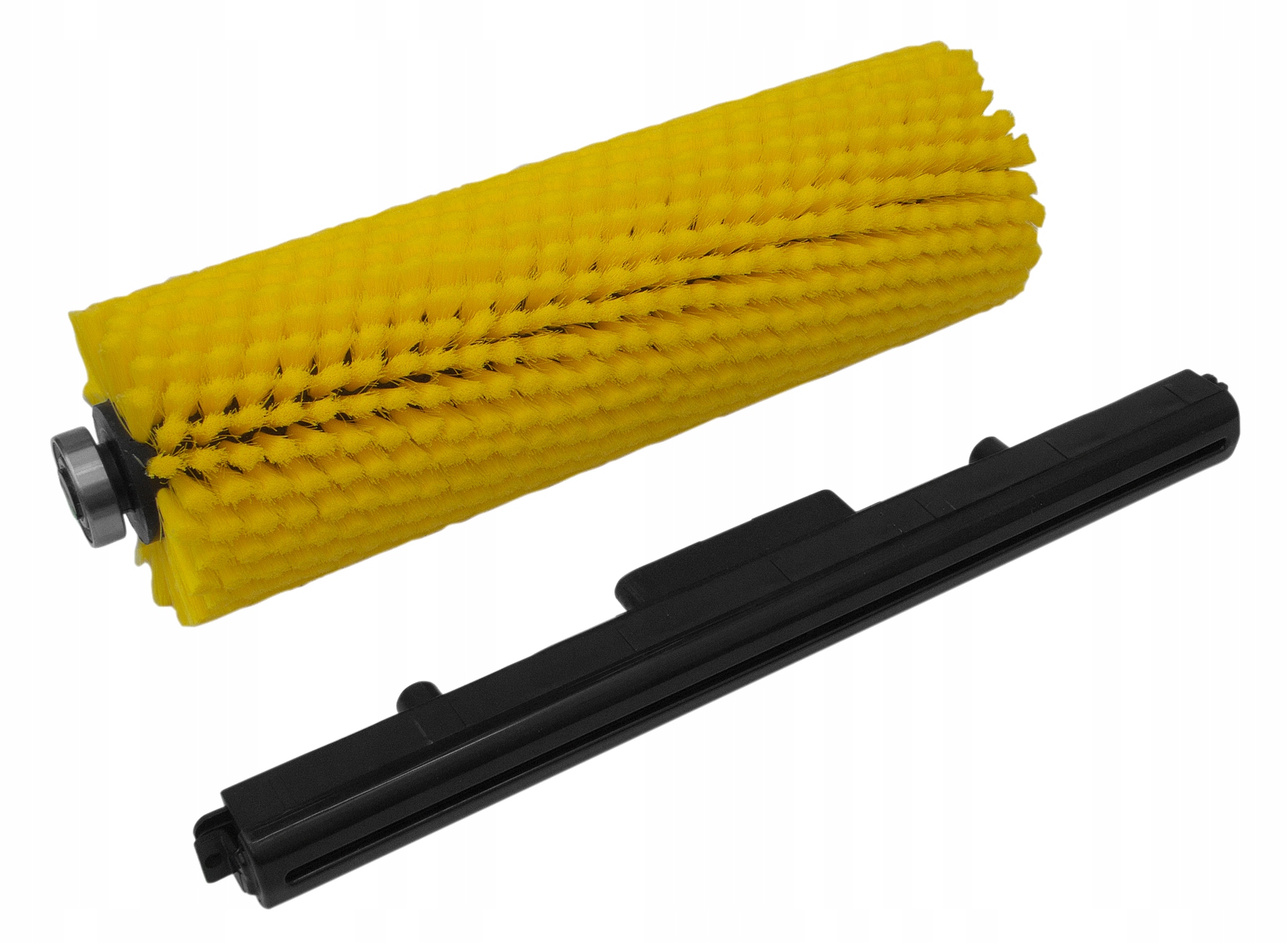 W urządzeniu jest już zamontowana szczotka walcowe. Maszyna jest gotowa do pracy. Twarde włosie pomoże przy zabrudzonych powierzchniach.