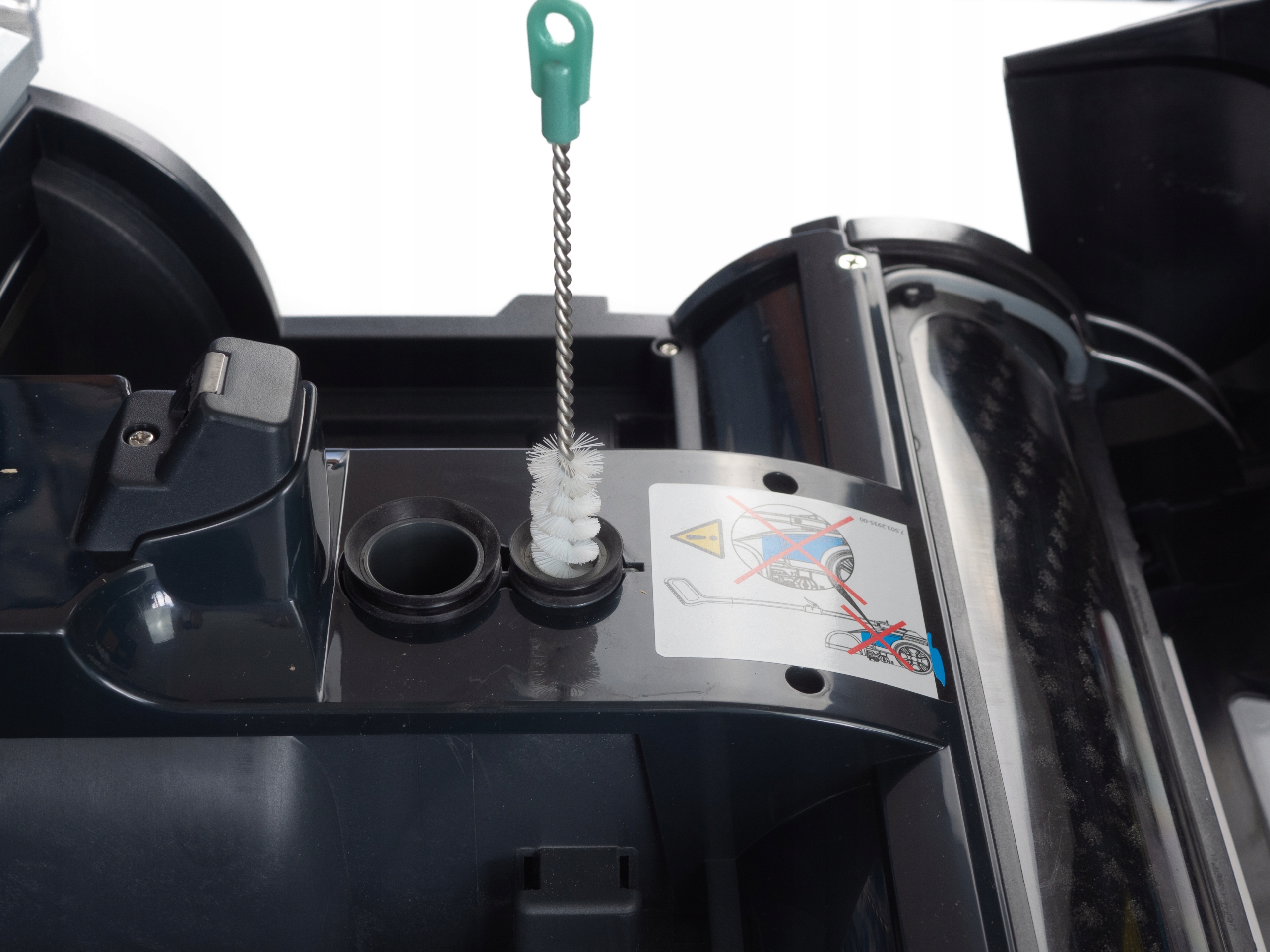 Mechanizm blokady szczotki dla szybszej wymiany szczotki lub rozłożenia do wyczyszczenia pod bieżącą wodą.