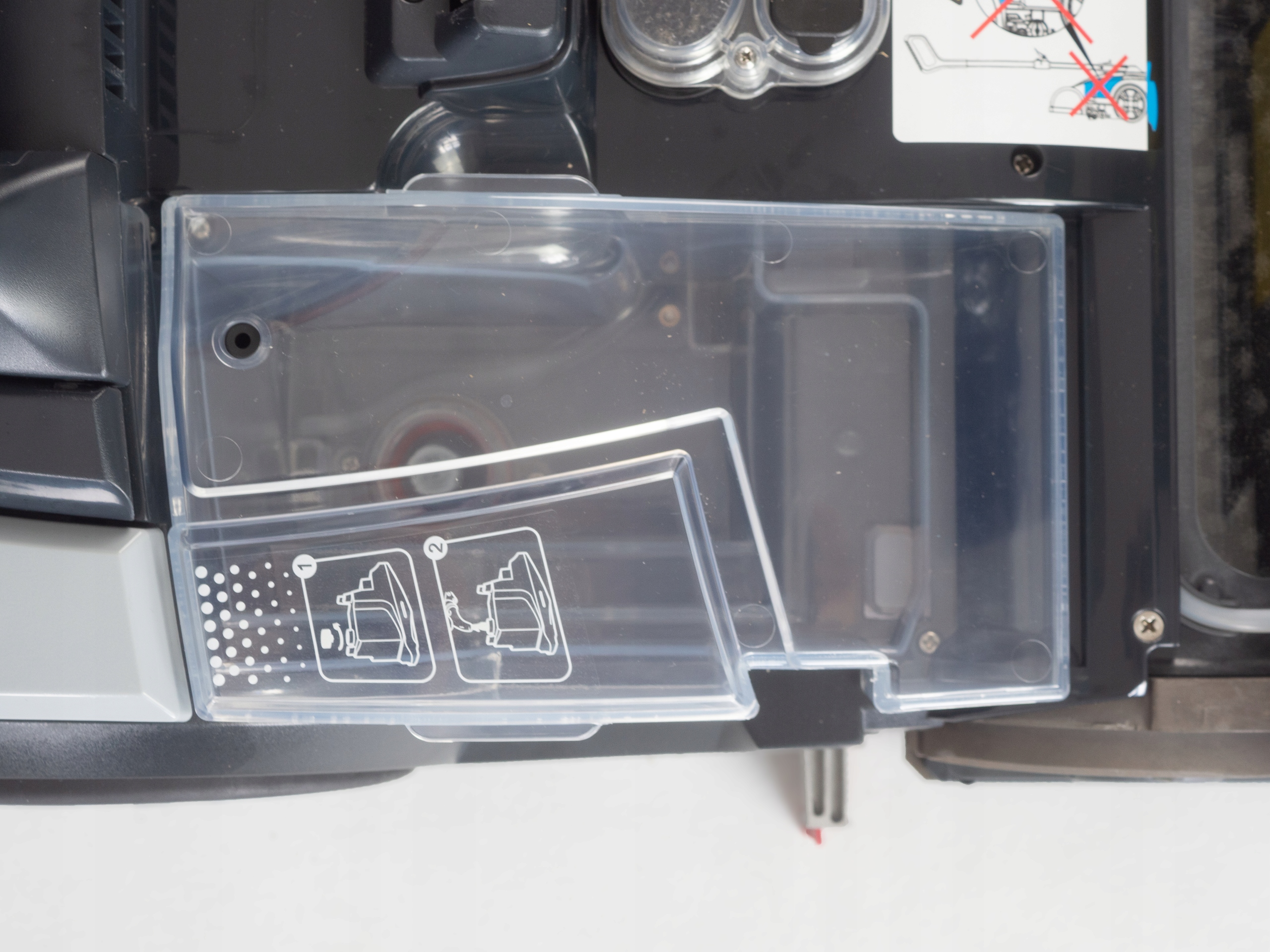 Wyjmowany pojemnik brudnej wody, wykonany z przezroczystego plastiku dla łatwiejszej inspekcji